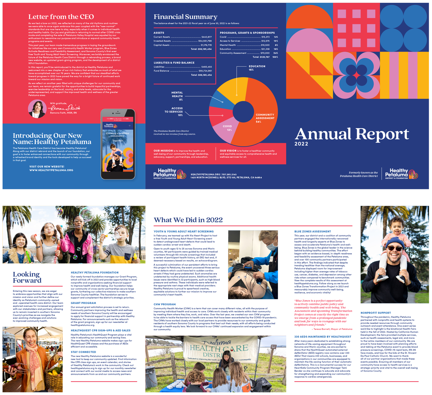 Partnering with an agency, I helped the City of Petaluma Health Care District clarify its mission and vision around community health and well-being, and developed a new brand voice that articulates the measurable impact of its work.